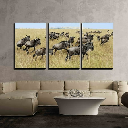 Wall26 3 Piece Canvas Wall Art Wildebeest In National Park Of Kenya Africa Modern Home Decor Stretched And Framed Ready To Hang 16 X24 X3
