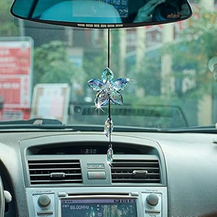 Uzhopm Beautiful Crystal Flower Car Pendant Lucky Hanging Ornament Car Interior Decoration Car Accessories Home Decor Colorful