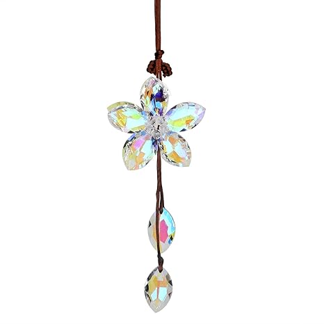 Ur Urlifehall Crystal Flower Car Hanging Ornament Car Rear View Mirror Pendant Car Accessories Home Decor Colorful
