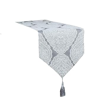 Nikicains Thickly Handmake Table Runner Classic Home Decoration Accessories With Tassel Decor Grey 13 X 72