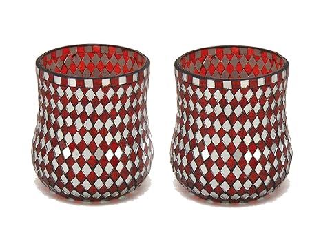 Amazon Com Set Of 2 Red Metal Tealight Candle Votive