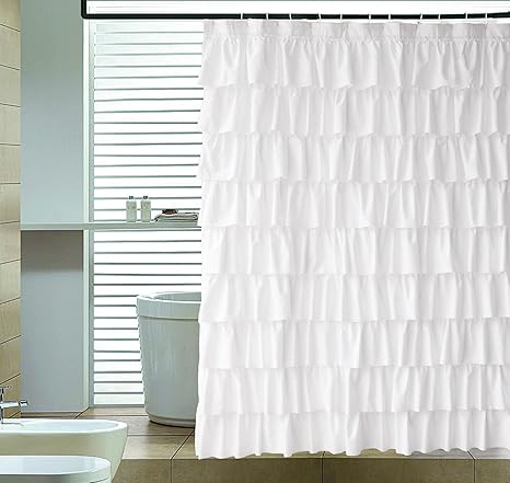 Ameritex Ruffle Shower Curtain Home Decor Soft Polyester Decorative Bathroom Accessories Great For Showers Bathtubs Large Size 72 X 72