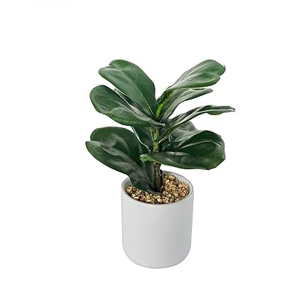 Besamenature Mini Artificial Fiddle Leaf Fig Tree Tabletop Artificial Tree For Home Decor 8 5 Tall Green Ceramic Pot