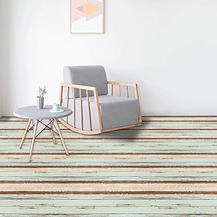 Linoleum Rug Vinyl Floor Mat Boho Home Decor Rustic Home Decor Vinyl Floor Rug Floor Covering Blue Carpet Faux Wood Mat